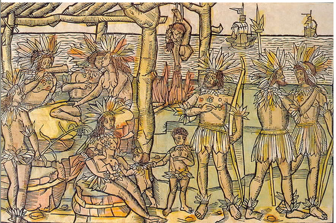 Imagen: Caníbales, grabado de Johann Froschauer para la