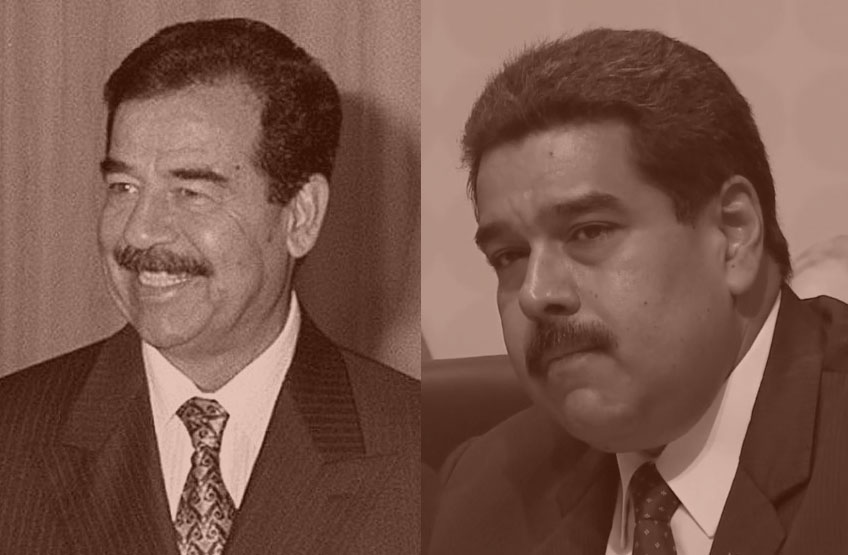Parece que Maduro quiere dejar de ser un dictador meramente histriónico y pretende emular a su modelo Sadam Husein desatando en Sudamérica un conflicto internacional análogo al que el dictador árabe inició al invadir a su pequeño vecino Kuwait.